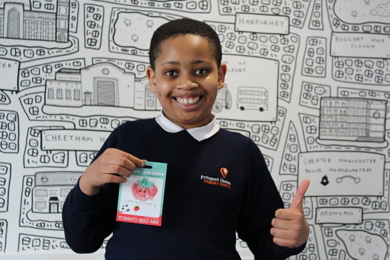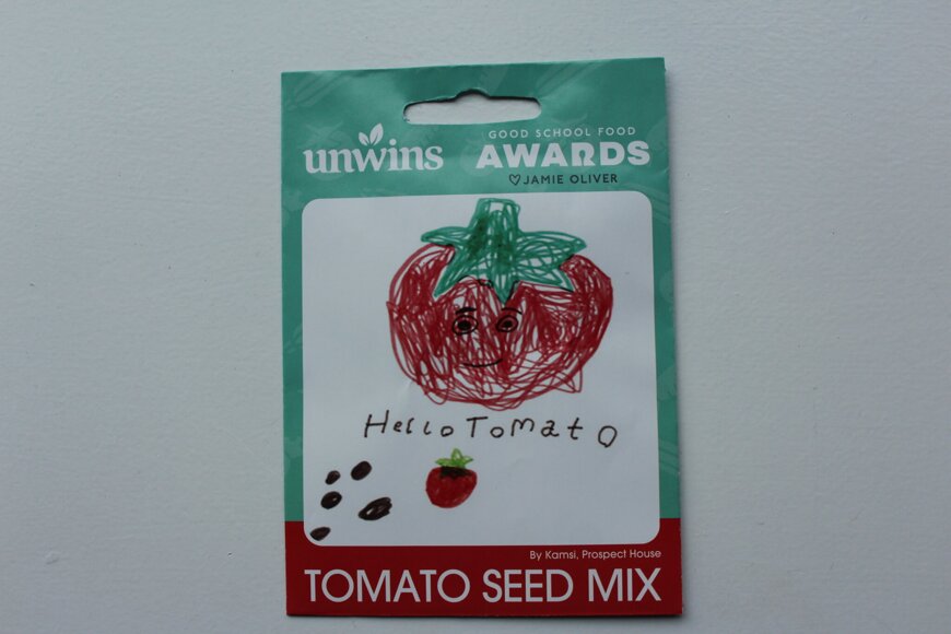 As part of our prize, the children were involved in designing a packet of Tomato seeds for Unwins. One design was chosen and has been printed onto a packet of seeds to go on sale in shops around the country!